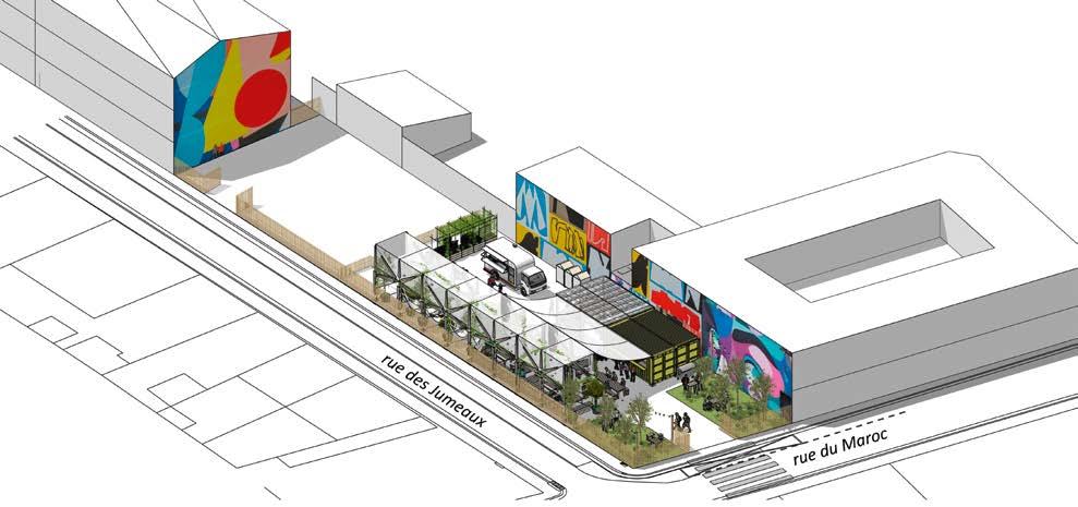 Pour préfigurer ce nouveau visage dont la livraison est prévue en 2027, des installations temporaires à l’image des futurs aménagements urbains seront positionnées le long de l’avenue de Lyon durant le printemps. Dès le 3 juin 2023, un collectif formé autour de l’agence Intercalaire animera un terrain en friche de 840 m² situé à l’angle de la rue des Jumeaux et de la rue du Maroc, avec une programmation socioculturelle et solidaire qui accueillera notamment la préfiguration du futur Pôle d’Innovation Sociale.